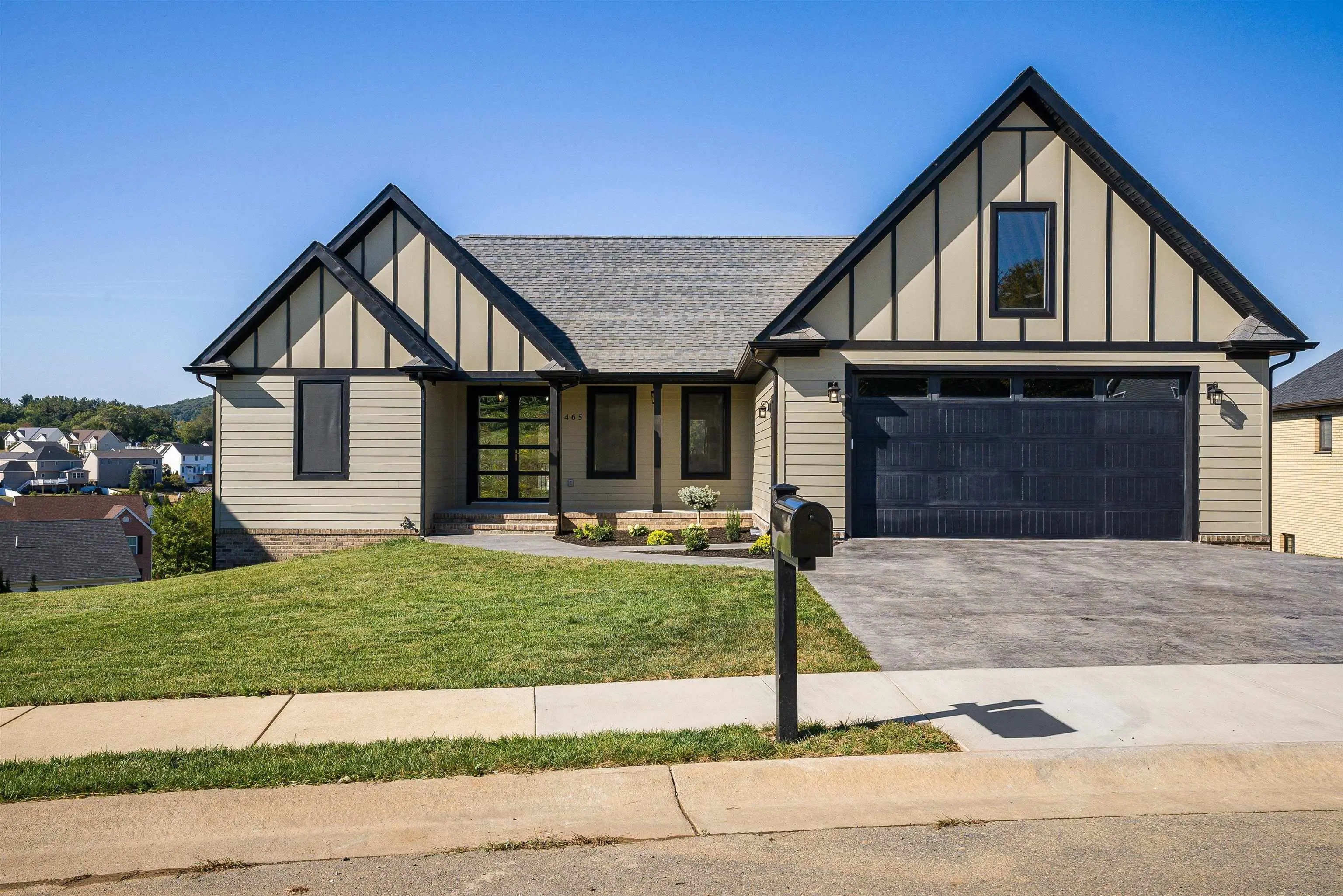 Brand-new ranch in Madison Village with mountain views! Main level offers 1,760 sq. ft. with 9 ft. ceilings, open kitchen with quartz, backsplash, vented stove, and bright living/dining spaces. 3 bedrooms including a master suite, 2.5 baths, laundry, and Trex deck. Finished basement adds 1,760 sq. ft. with 11 ft. ceilings, 2 bedrooms, full bath, 2nd kitchen, walk-out patio, plus 550 sq. ft. concrete room under garage. Quality features: Hardie siding, brick accents, European windows, 2-car garage, 400 amp service, and recessed lighting throughout.